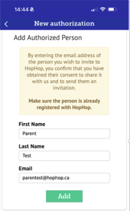 Note: When adding an authorized person, make sure that they are also on the official school list. If you ask someone on your HopHop list to pick up your child and that person is not on the official school list, the daycare will need to have official authorization from you before leaving your child leave with that person.