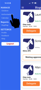 You can delegate a person from your list of authorized people. For the action to be visible to the daycare service, this authorized person must also use the HopHop application. Your child’s pickup request must therefore be made by this person to avoid synchronization problems and your child to wait a long time at the reception of the daycare.